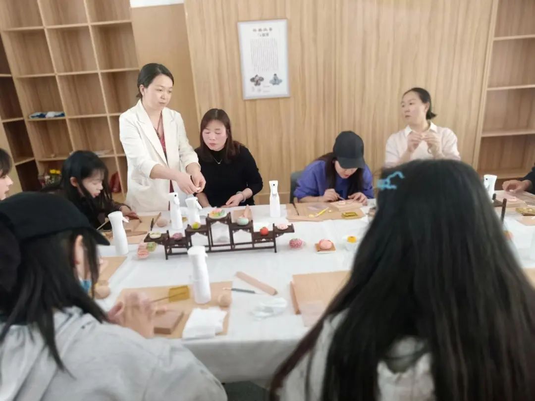 陆丽春老师正在为学员们讲解传统盘扣的制作技巧,老师手把手将制作工艺传授给大家,一条条特制丝带,一根根棉线在大家的巧手下变成了一个个精美的玉兰花胸针。大家纷纷表示,在制作盘扣的过程中,不仅对盘扣的历史和用途有了新的认识,而且缓解了工作生活中的疲惫和压力。