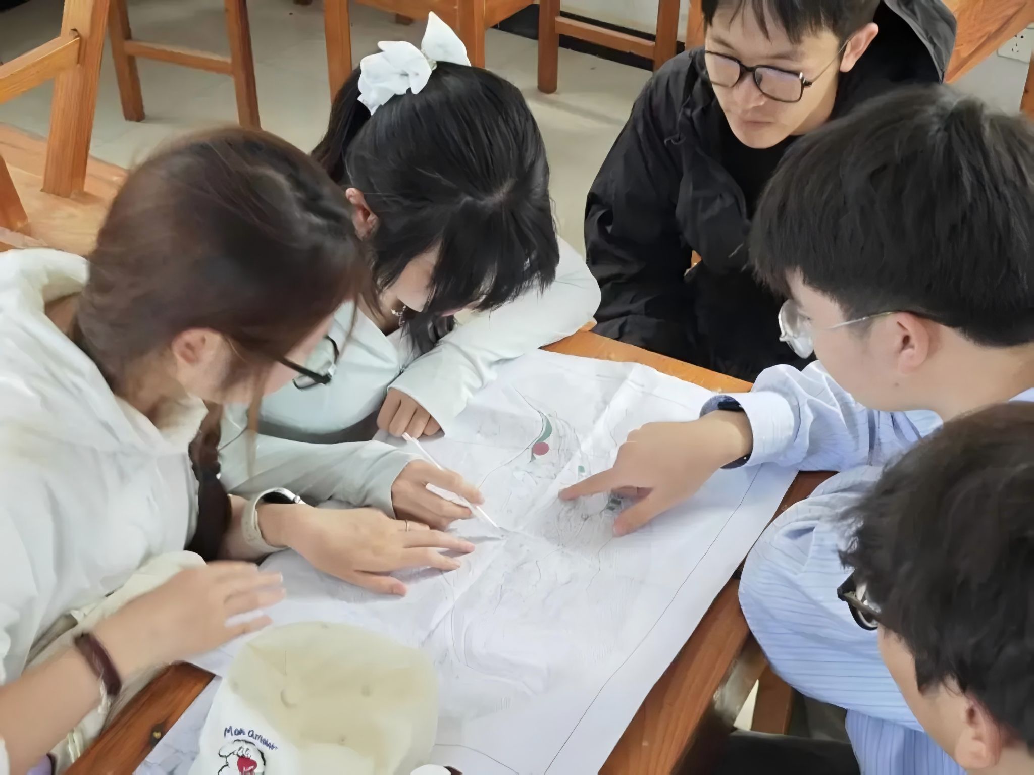 在李楠老师带领下,环境设计专业学生运用测量设备,对大路老寨的建筑与人居环境展开全面的数字化测绘。师生们穿梭于蜿蜒村道,细致测量并记录每一处民居特色。大路老寨民居多依山而建,蒋雪峰老师带领学生深入村落后山,为同学们探路定位,助力大家全面掌握民居建筑形态。目前,团队正着手建立完整的建筑3D模型数据库,为后续村落相关规划提供精准数据支持。