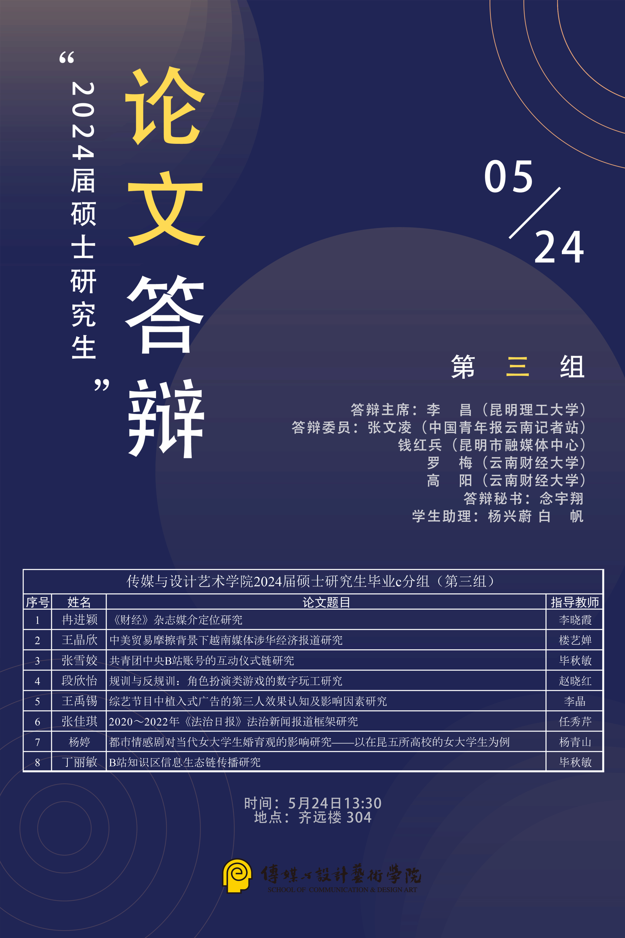 传媒与设计艺术学院2024届新闻与传播硕士研究生论文答辩公告