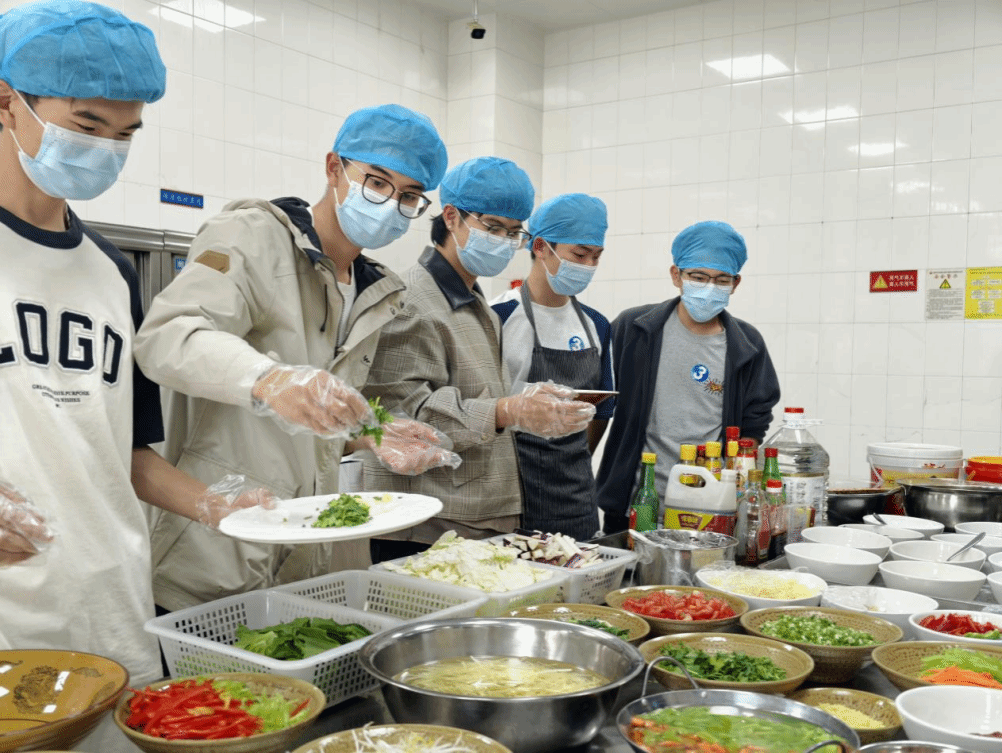 参观结束后,组织学生代表分组参与烹饪体验,在专业厨师指导下,学生代表从配菜、配料到加工进行沉浸式体验。