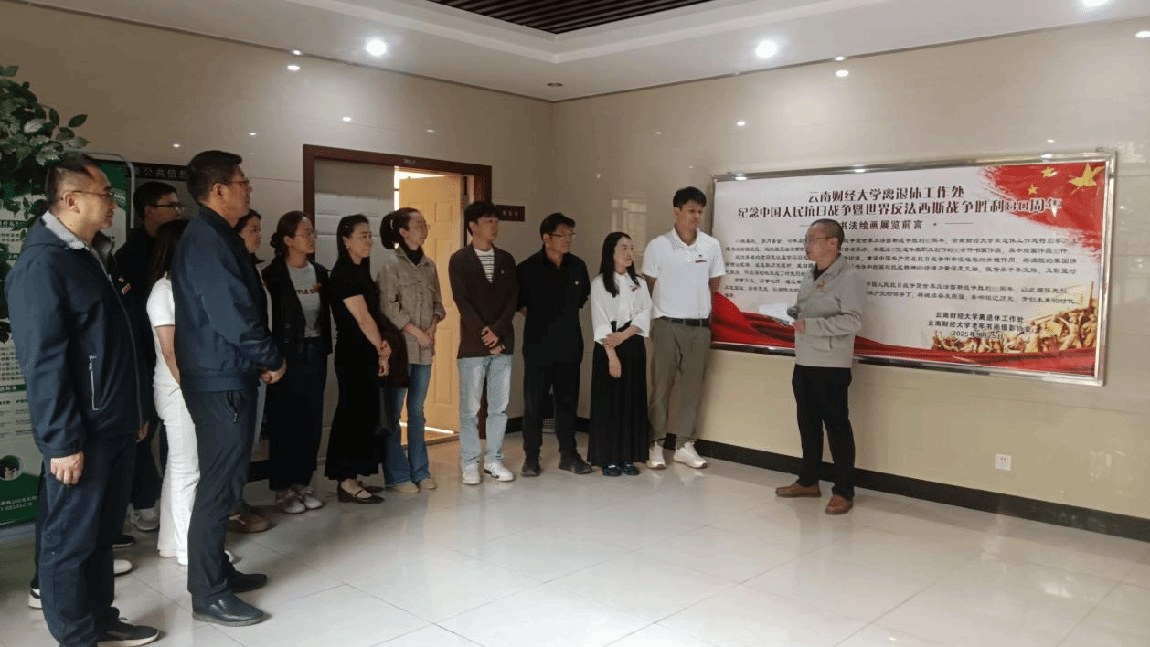 10月16日上午,集团党委第一党支部到学校职工文化活动中心,参观由学校老年书画摄影协会承办的“纪念中国人民抗日战争暨世界反法西斯战争胜利80周年”书画展。