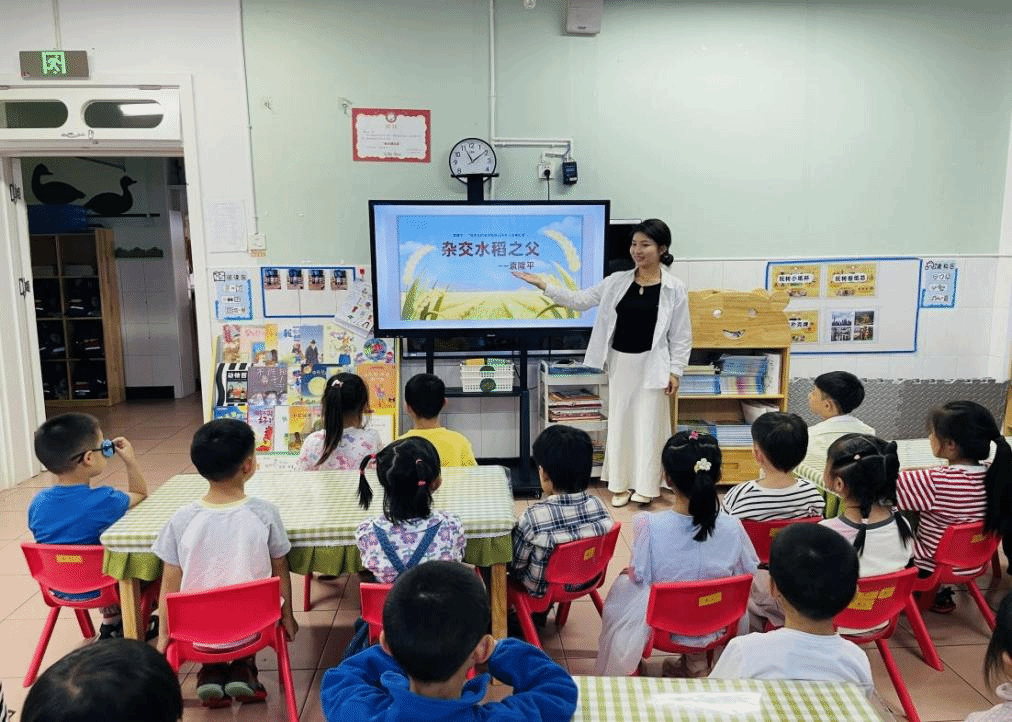 教育实践阶段,各班级同步开展“节约粮食”系列教学活动。小班以古诗诵读浸润童心,让幼儿在朗朗书声中感知每一粒粮食的来之不易;中班借助绘本故事,引导孩子认知每一粒粮食的成长历程;大班通过讲述袁隆平爷爷的故事,培树幼儿珍惜粮食、致敬英雄的朴素情感。