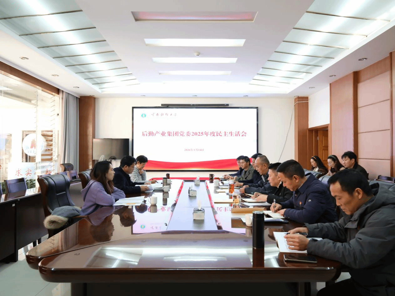2026年1月14日下午,后勤产业集团党委在海棠餐厅五楼小会议室召开2025年度党委班子民主生活会。学校党委委员、副校长、第六督导组组长李正彪,副组长陈艺溱,成员谢天娇到会指导。集团党委书记李正彬主持会议,全体党委委员参加会议。