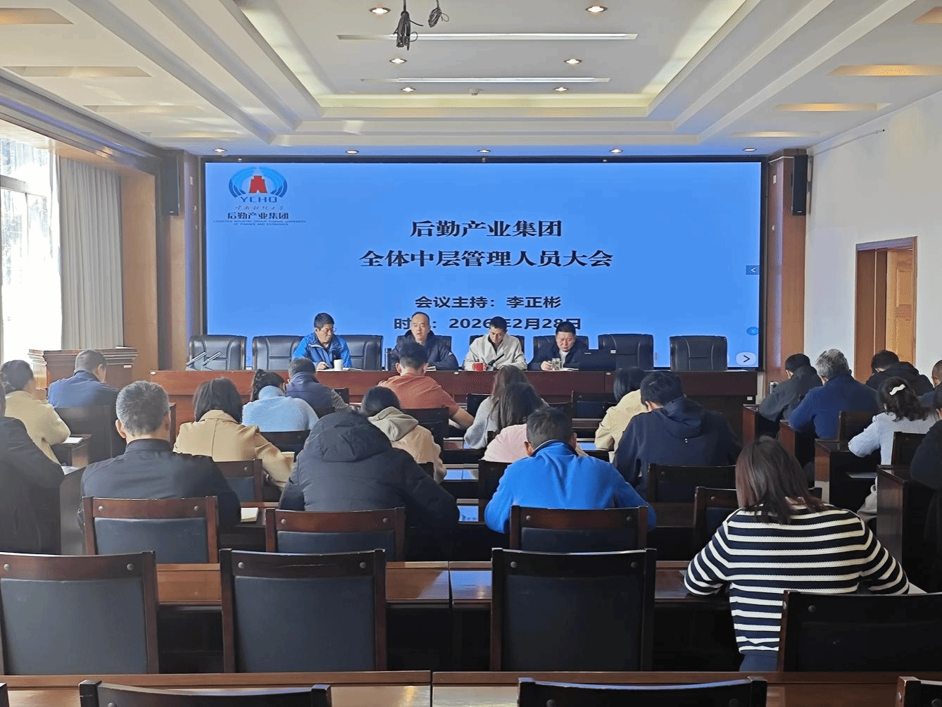 2月28日,集团召开2026年春季学期全体中层管理人员大会,传达学校2026年春季学期干部大会精神,集团党委书记、总经理李正彬主持会议并总结讲话,党委委员、副总经理李天俊总结2025年秋季学期工作成效并安排部署2026年春季学期工作要点。