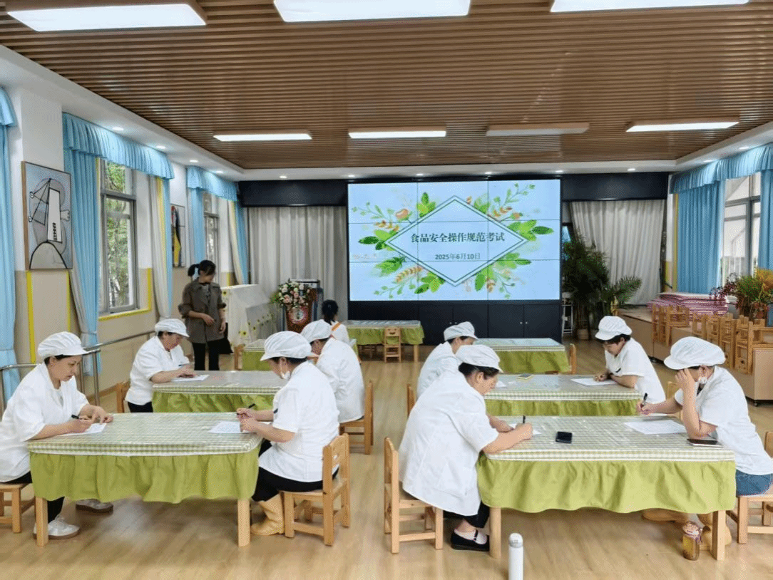 后勤组围绕“规范管理、科学膳食、细节守护”三个环节,通过笔试检验职工对食品安全法律法规知识的学习掌握情况;通过厨艺展示考察后厨人员食材搭配、烹饪工艺及摆盘设计等技能,通过“引导幼儿自主取餐、餐后整理”过程展示考察保育员的业务技能。