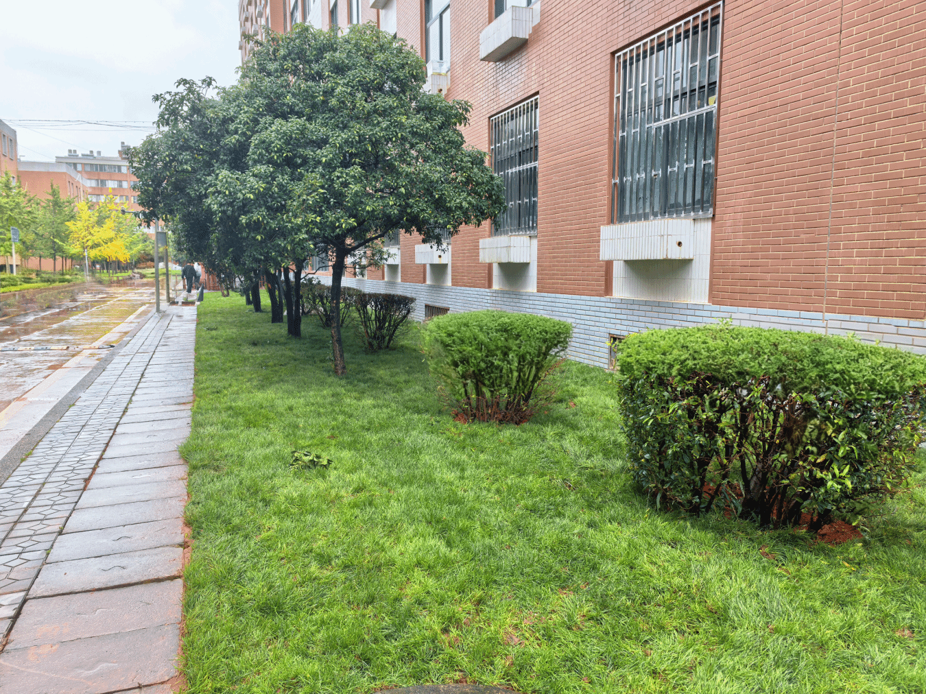 经过连续4天的紧张有序施工,绿化专项改造于11月17日圆满完成。此次改造共计填土380方,铺设草坪1200㎡,改造后的周边绿化带疏朗通透、整洁有序、通行顺畅,校园环境视觉美感有效提升。