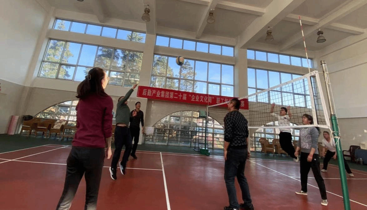 赛场上,队员们攻防有序、默契配合,赛场边,观众们呐喊助威、气氛热烈,展现了后勤员工团结协作、昂扬向上的精神风貌。