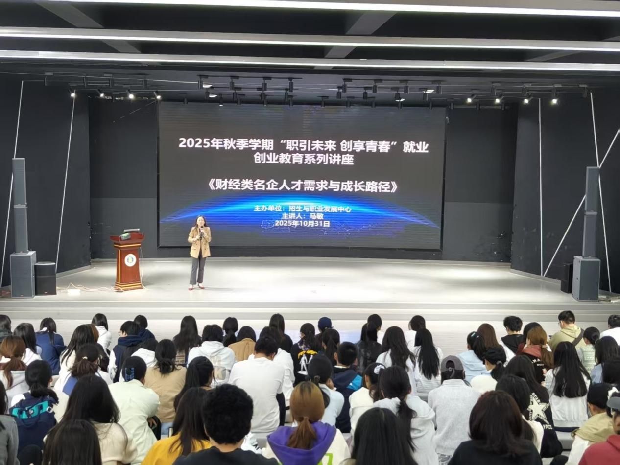 10月31日,招生与职业发展中心举办“职引未来,创享青春”就业创业教育系列讲座,人力资源专家马敏以《财经名企人才需求与成长路径》为题,结合当前就业形势解读名企招聘逻辑,帮助同学们规划职业发展路径。