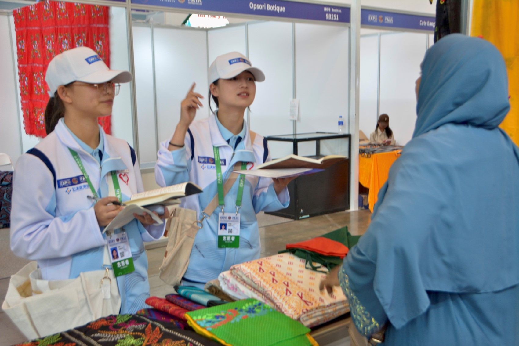 南博会期间,我校志愿者具体负责9个展馆的销售额统计、语言服务以及各馆的满意度调查。同学们坚守岗位,带着满腔的热忱投入到每天的工作中——有的同学穿梭在各个展位,明确多个国家商家数量,记录具体销售数据;有的同学为来自南亚、东南亚以及境外其他国家的展商们提供文字和口语的翻译支持,帮助展商们与参展嘉宾及游客高效交流,保证交易的顺利进行;有的同学则在各馆开展问卷调查,以获取最及时的反馈。