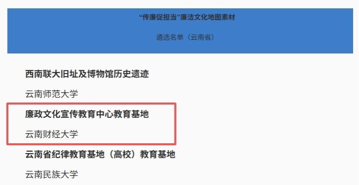 云南财经大学廉政文化宣传教育中心入选教育部廉洁教育优秀作品