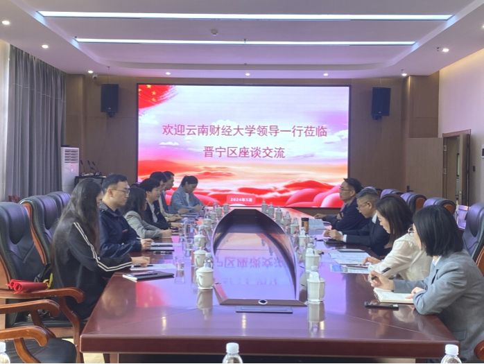 昆明市晋宁区区长、晋宁区财政局、晋宁区国资运营服务中心、晋宁区商务服务局、晋宁区国有资本运营有限公司等高层领导以及金融学院党委书记胡小珊,院长周伟,副院长杨国辉、李江城、李云仙,就业辅导员何青、科研助理张玉莹参加交流。