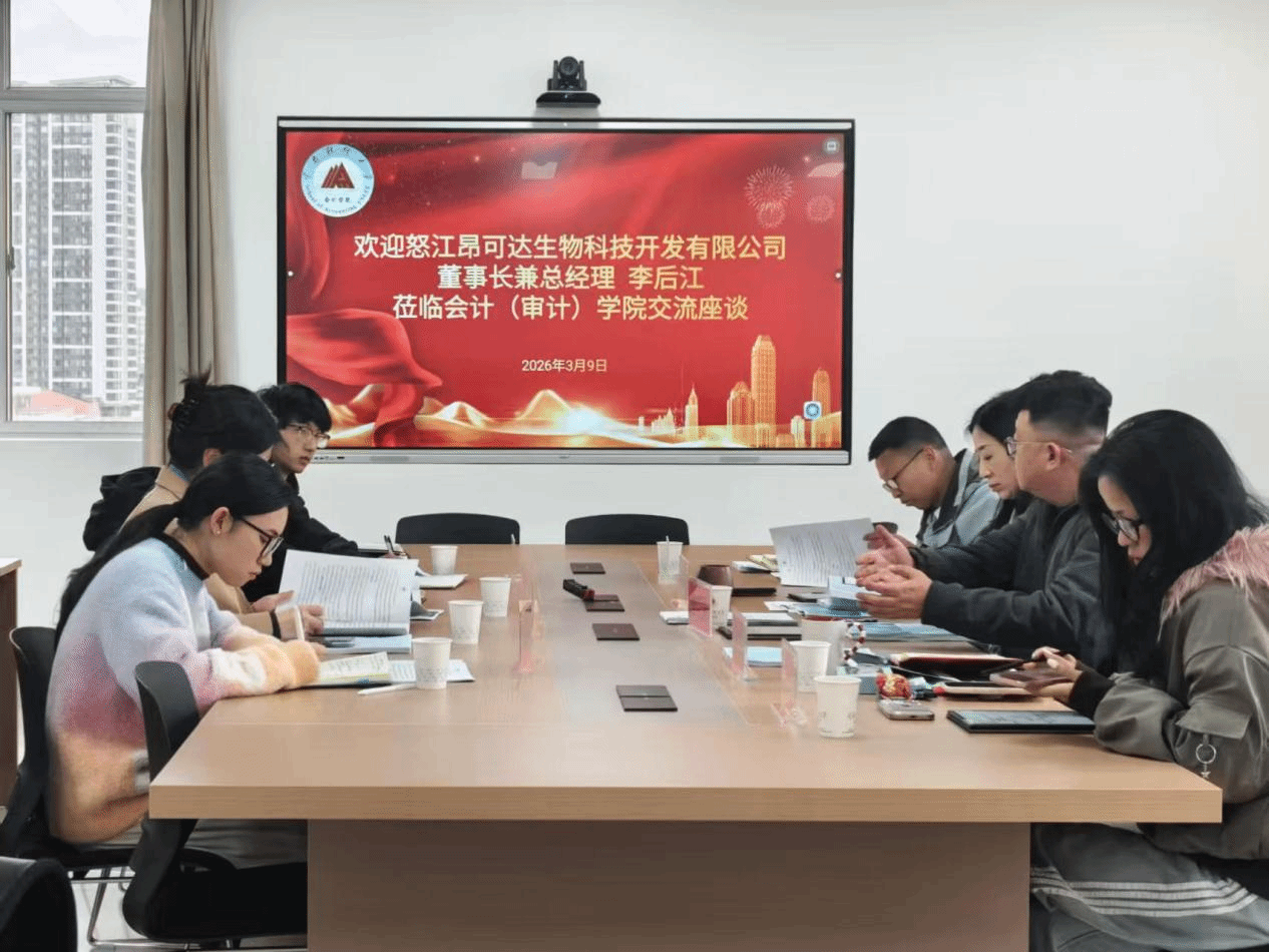 为深化产教融合协同育人,进一步提升学生创新创业实践能力及“挑战杯”备赛水平,3月9日下午,怒江昂可达生物科技开发有限公司董事长兼总经理李后江、副总经理杨娅兰莅临会计(审计)学院,开展创新创业项目交流座谈。学院党委书记刘晓蓉、党委副书记刘李福、双创赛事专家铁婧、团委书记杨力歌、团委老师张迪及学生项目团队成员共同参会。