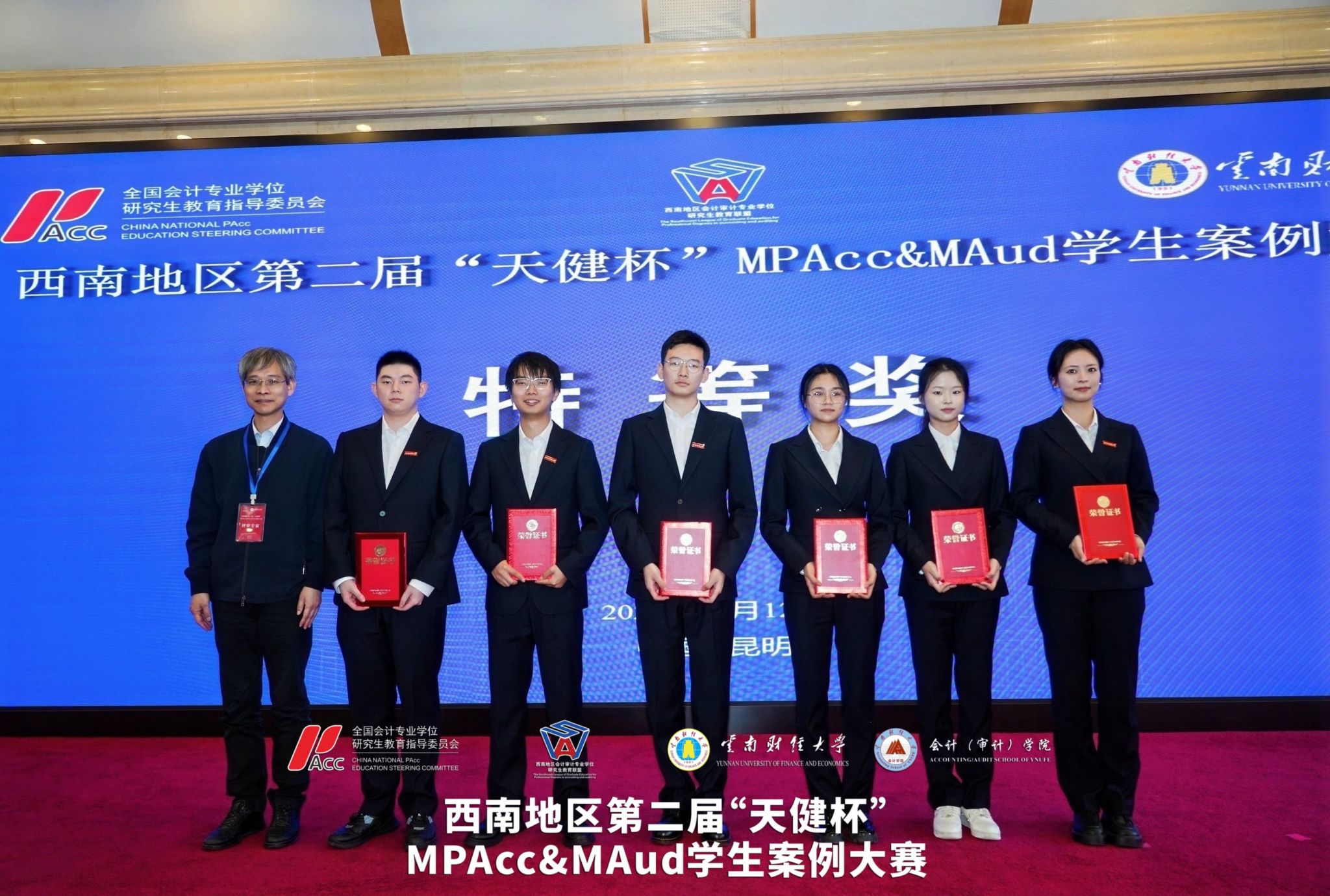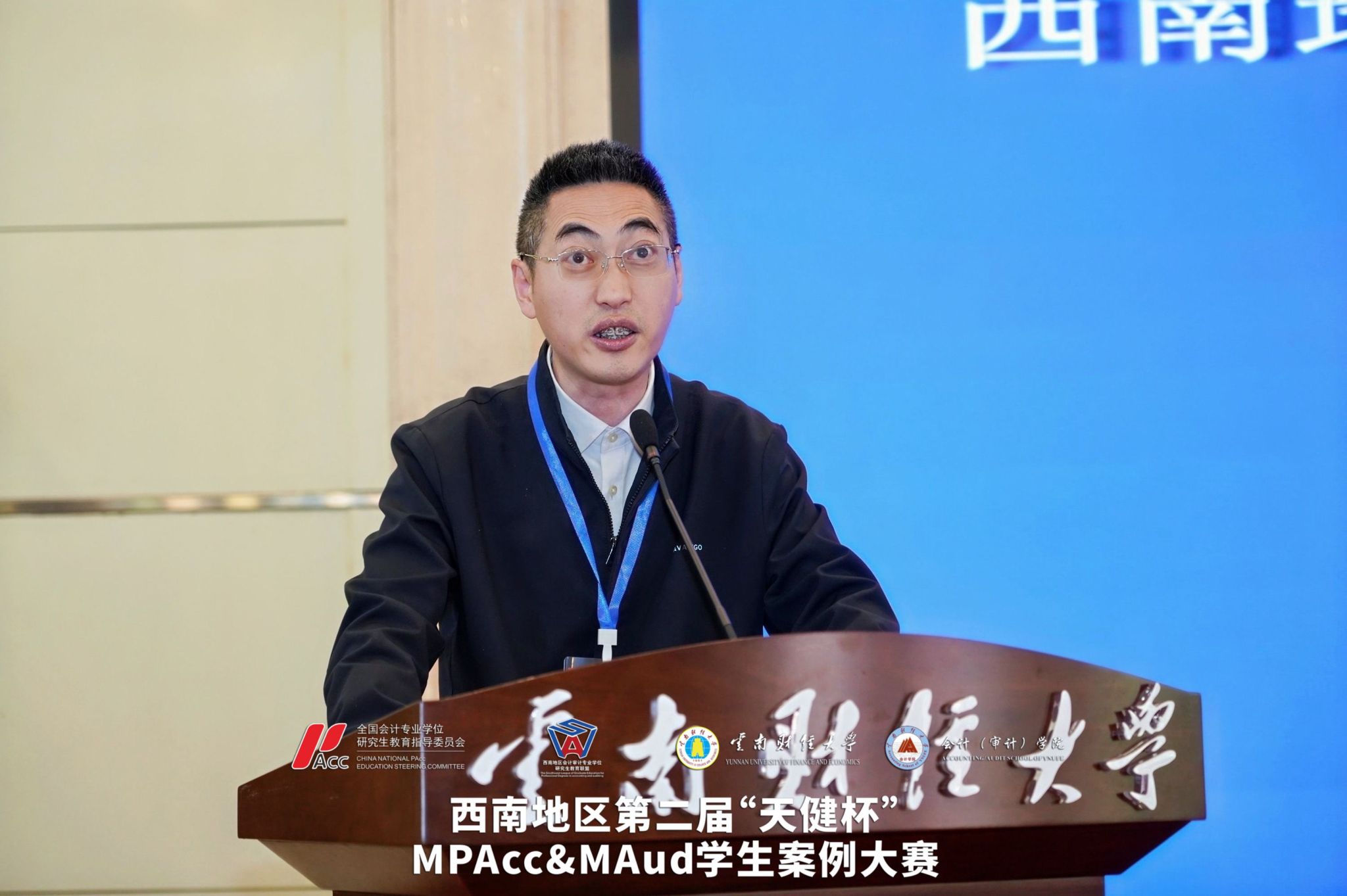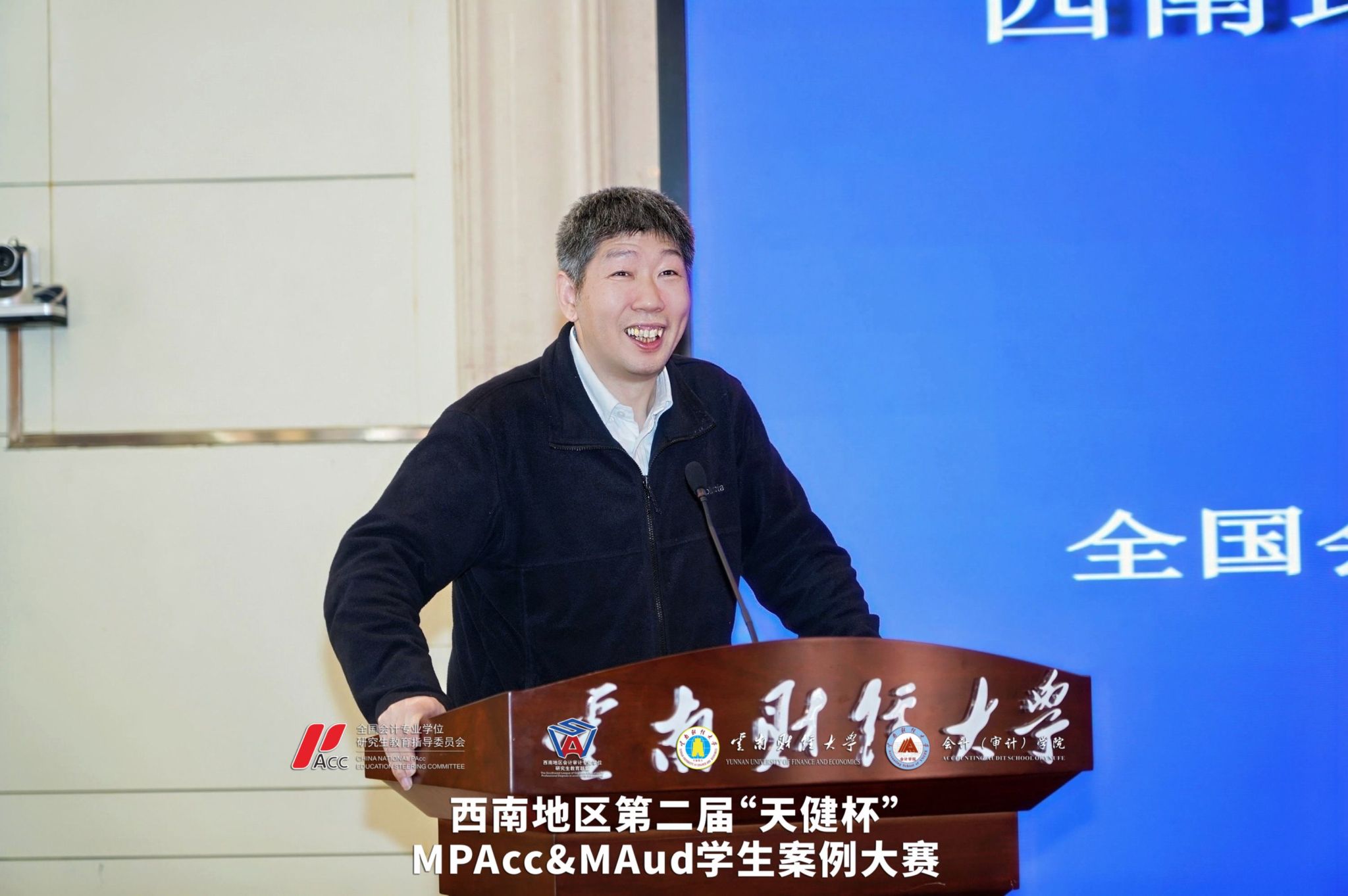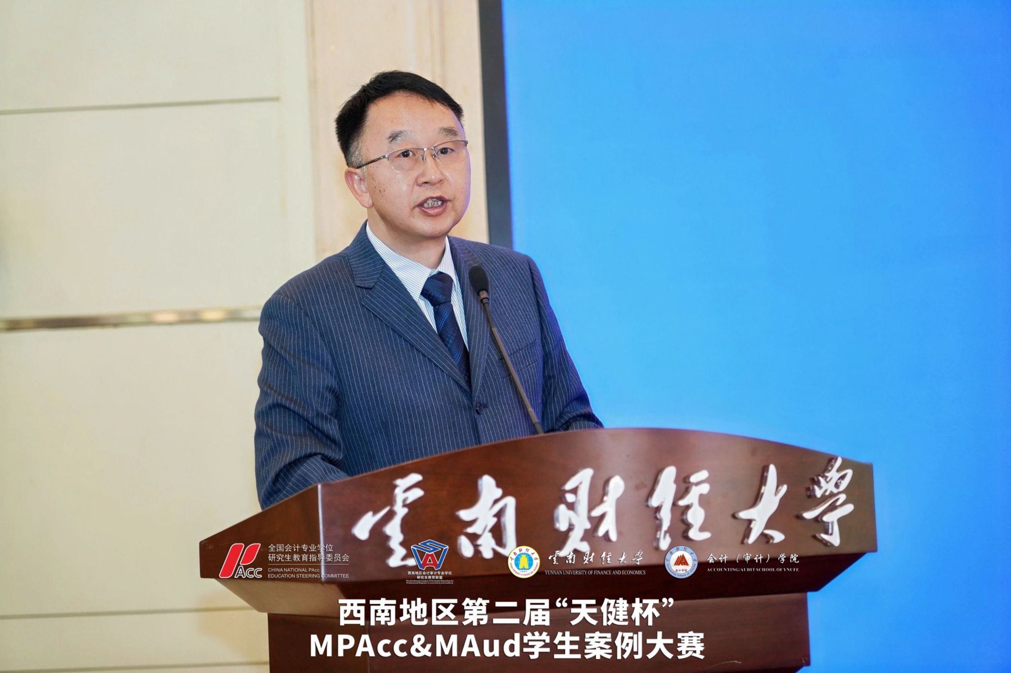 2026年4月11日至12日,西南地区第二届“天健杯”MPAcc&MAud学生案例大赛在我校落下帷幕。西南地区会计审计专业学位研究生教育联盟共同主席、重庆工商大学原校长孙芳城教授,贵州财经大学副校长杜剑教授,云南财经大学副校长余怒涛教授,全国MPACC教指委委员、西安交通大学汪方军教授,西南地区会计审计专业学位研究生教育联盟秘书长、西南财经大学会计学院院长唐雪松教授,云南省教育厅学位管理与研究生教育处处长司慧迎女士,天健会计师事务所云南分所高级合伙人、总经理左翔先生等出席决赛现场。研究生院院长纳超洪教授主持开幕式。