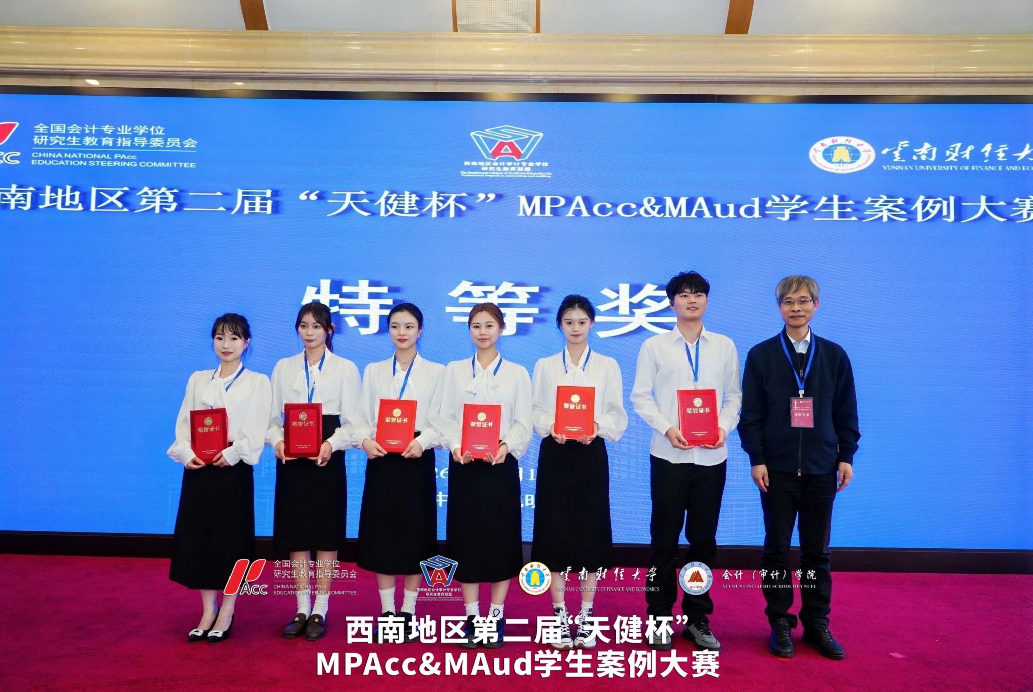 经过激烈角逐,最终西南财经大学“山川零碳队”、重庆工商大学“从容应队MPAcc队”获特等奖,重庆理工大学“创新者联盟队”、云南财经大学“冠均队”等4支队伍获一等奖,广西财经学院“财华横溢队”、重庆科技大学“扣点点小分队”等5支队伍获二等奖。重庆理工大学汤锦程、广西财经学院李睿欣,西南财经大学杜仙杰、重庆工商大学邹镕蔚分别获得复赛、决赛最佳个人表现奖。