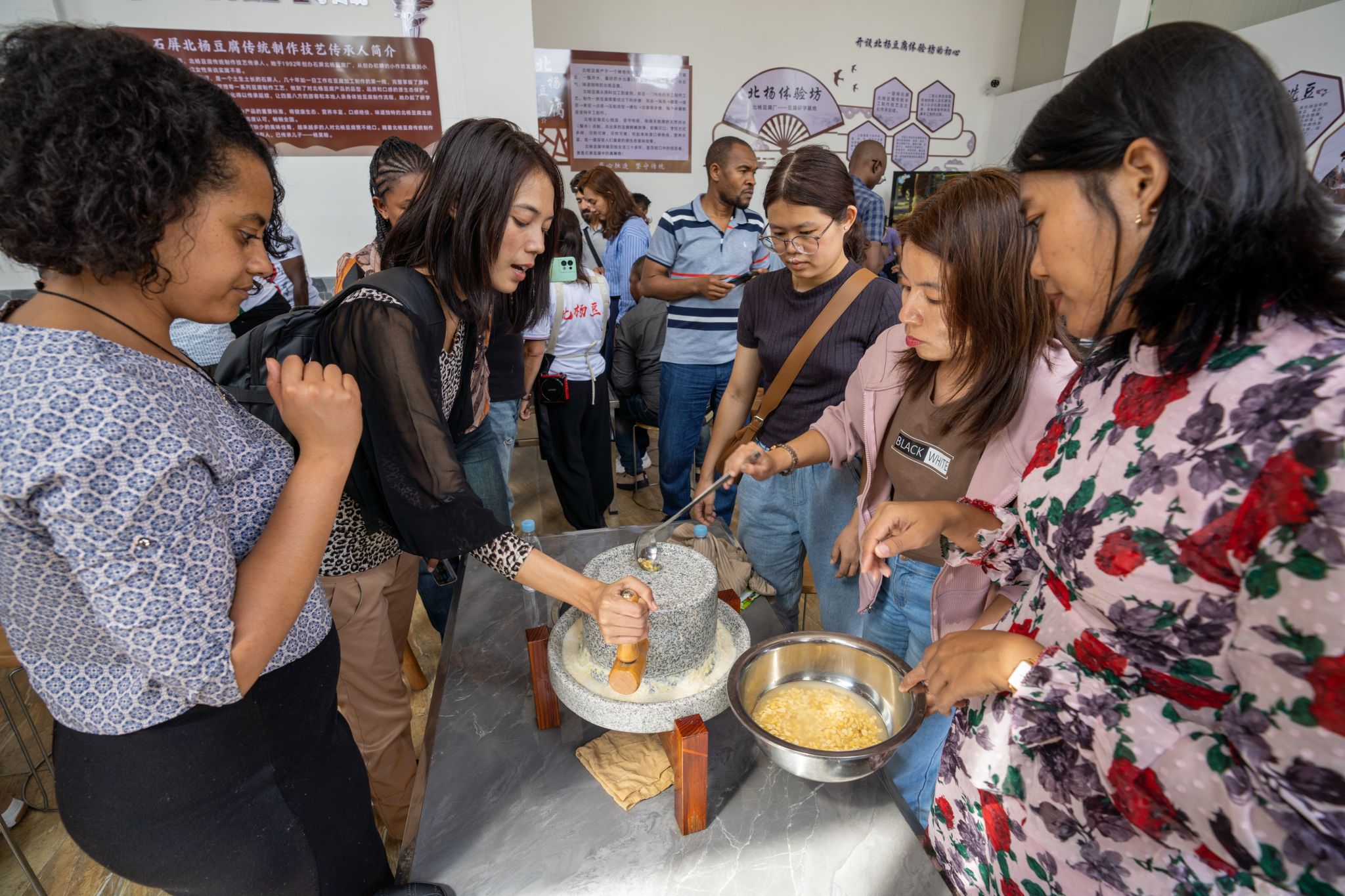 在石屏,学员参观考察了石屏工业园区、豆制品特色产业园区、豆腐文化产业园区和绿色食品精深加工园区。学员亲自体验从豆子加工成为豆浆、豆花、豆腐的生产过程。本次活动生动地向学员展示石屏县豆制品产业集群发展历程,展示中国在乡村振兴中的生动实例。