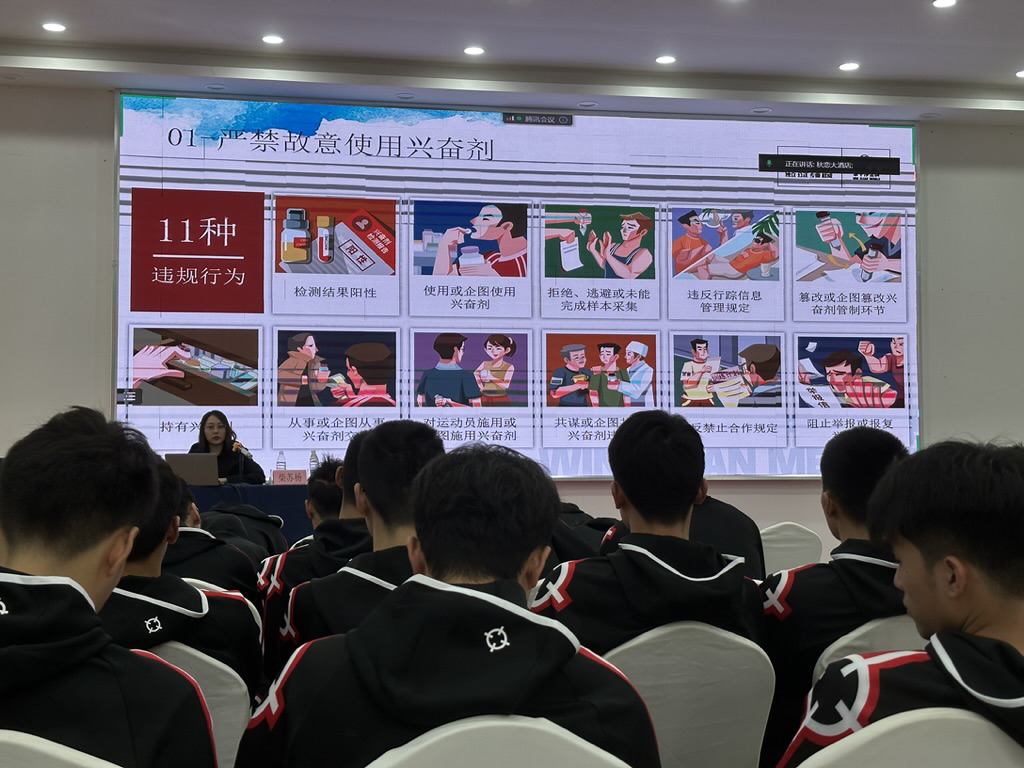参与本次讲座教练员与运动员都是第一次接触反兴奋剂知识,讲师主要介绍了兴奋剂的定义、使用兴奋剂的危害及后果、兴奋剂风险防控措施等,并通过真实案例进行分析探讨。讲座最后还进行了现场答疑,使运动员及时了解兴奋剂及其危害,了解反兴奋剂的重要性,帮助运动员从自身出发抵制使用兴奋剂,掌握防范兴奋剂误服误用的方法。