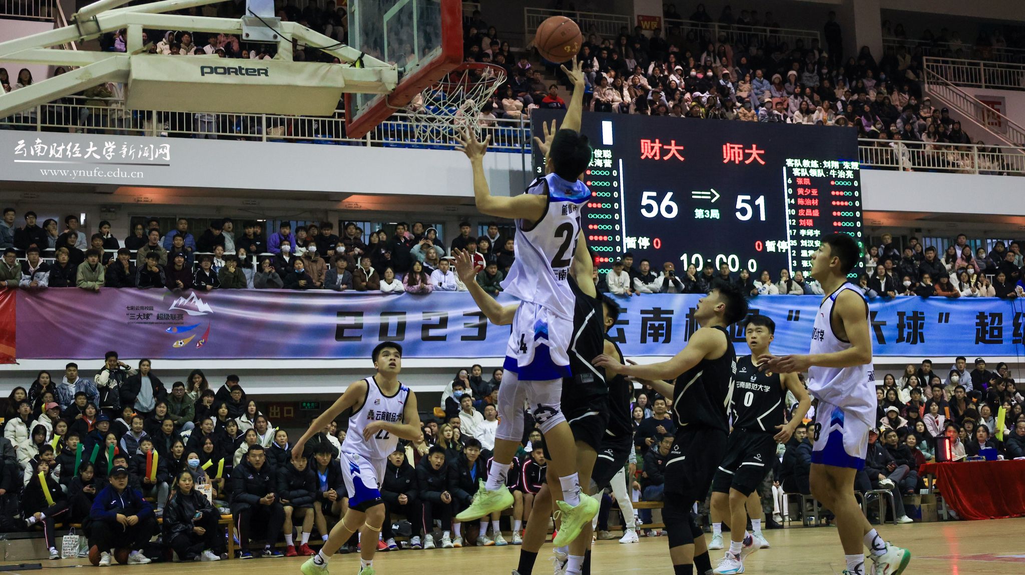 1月3日晚,第26届中国大学生篮球(一级)联赛云南赛区冠军争夺赛暨闭幕式在我校南院体育馆主馆举行,我校高水平男子篮球队对阵云南师范大学队并最终以94:84战胜对手,夺得总冠军,实现队史第8冠。云南省教育厅厅长、党组书记,省委教育工委副书记王云霏为我校获奖运动队颁奖。