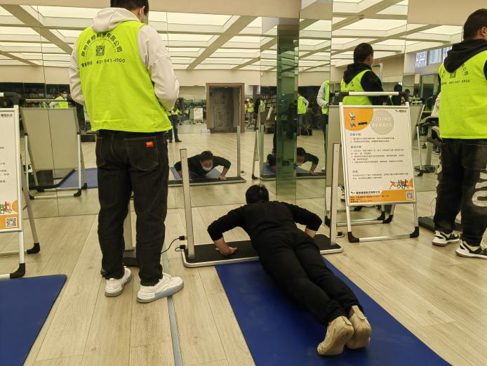 委厅机关职工正在进行CSTF-FW型俯卧撑测试