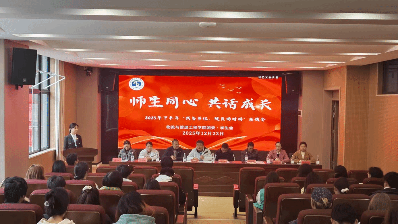 为搭建师生沟通桥梁,倾听学生成长诉求,2025年12月23日,物流与管理工程学院于诚远楼305报告厅举办“师生同心,共话成长——我与书记、院长面对面”座谈会。学院院长刘春学,党委副书记杨缅,副院长杨润高、罗冬晖,相关科室负责人及各班学生代表参加此次交流座谈。