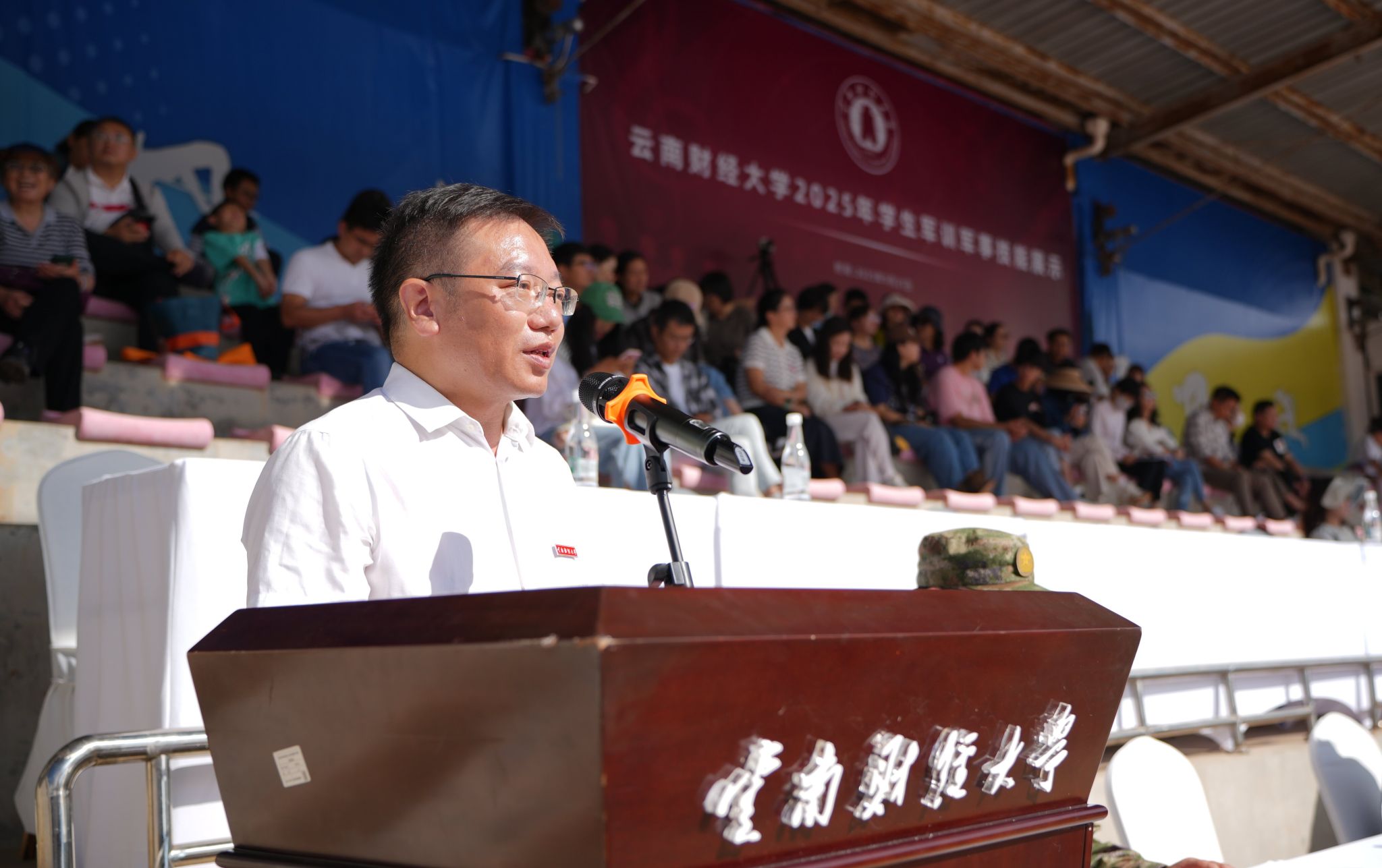 朱文、沙磊分别在两个校区宣读《云南财经大学关于表彰2025年学生军训优秀连队及先进个人的决定》,对军训中涌现出的一批优秀连队、优秀指挥员、优秀教导员、优秀教官、优秀指导教师、训练标兵、宣传标兵给予表彰。