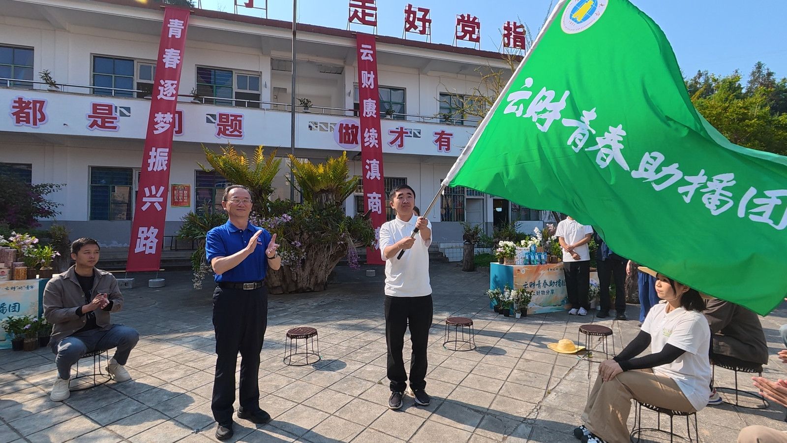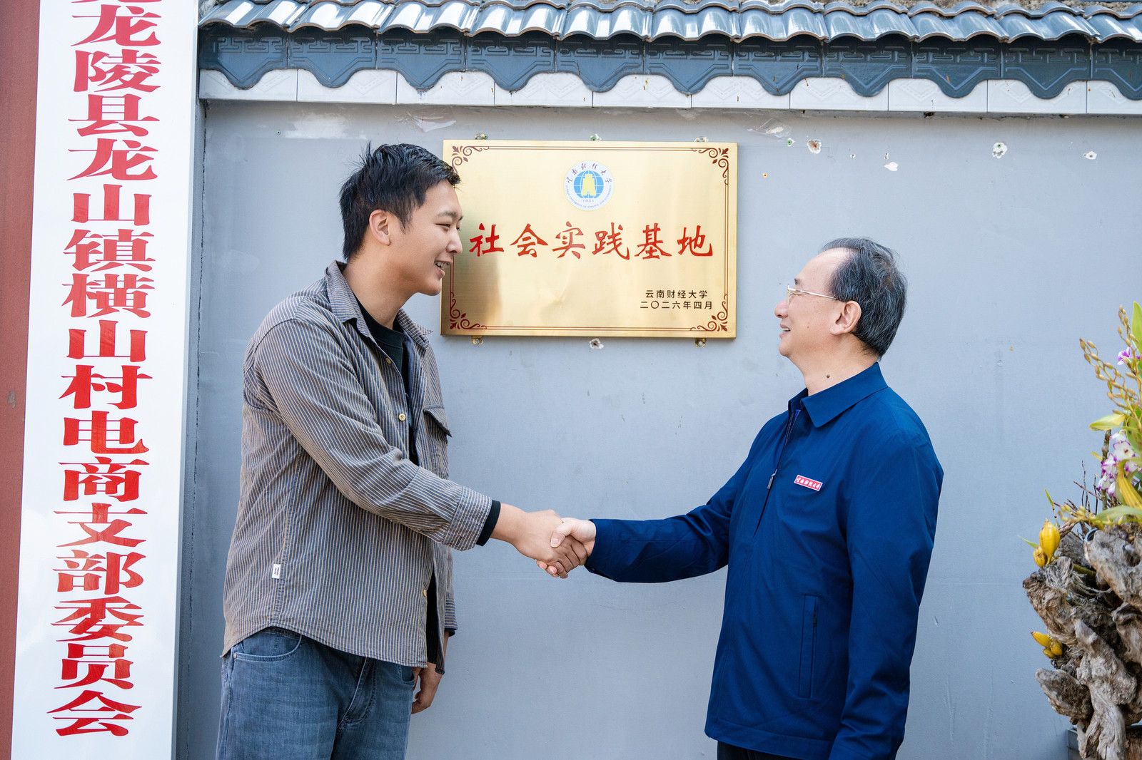 比赛期间,校党委书记陈红深入学生助农直播一线,先后走访创业街区、石斛种植基地及龙陵非凡农业科技有限公司,为“社会实践基地”揭牌,向“云财青春助播团”授旗,并与参赛师生座谈。陈红充分肯定了同学们在助农直播竞赛中展现出来的青春朝气与社会责任感,强调高校服务乡村振兴、赋能地方产业发展是义不容辞的责任,鼓励同学们扎根实践大地,把专业知识转化为助农兴农的实实在在力量,在服务地方发展的过程中增长才干、实现价值。参赛同学们也纷纷表示,走出课堂走进石斛田,才真正读懂了书本里“产教融合”“乡村振兴”的含义,镜头前的每一次讲解、直播间的每一笔订单,都让自己真切感受到青年学子能为乡土发展做些什么,这样的实战经历比书本知识更鲜活、更动人。