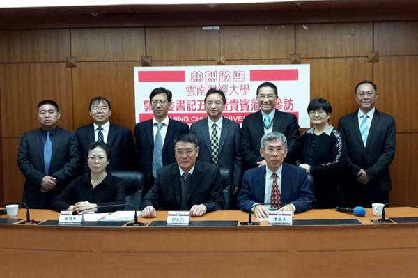 11月26日,代表团前往位于嘉义的云林科技大学,与该校副校长杨能舒、黄振家,人事室主任郑道隆、国际事务长苏维杉进行座谈。双方在教师访学、学生短期交流,以及创意设计专业精品课程建设等方面进行磋商,并参观了该校图书馆、校史馆和艺术中心。