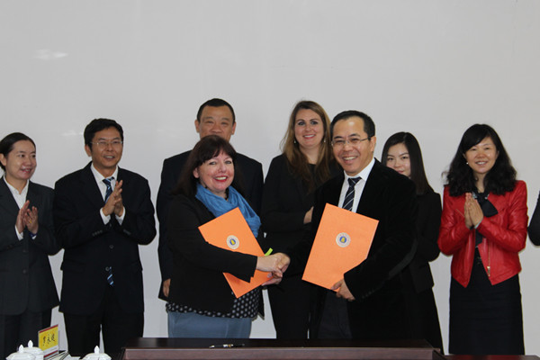 10月16日,英国格拉斯哥喀里多尼亚大学全球参与和招聘总监Susan McGiffen、招聘主任Victoria Wilson、国际商务发展官员Jia Yu Xie一行三人到我校交流。副校长殷红在中华职业学院与代表团举行会谈并签订了合作备忘录。