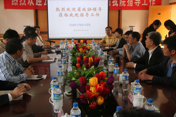 5月15日上午,云南省政协副主席顾伯平带领省政协调研组一行10人,在校长熊术新,副校长周跃、殷红的陪同下到国际工商学院就国际合作办学情况进行调研。