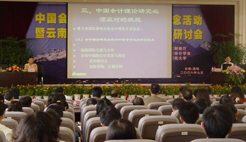 7月5日、6日,中国会计与改革开放30年纪念活动暨云南省首届会计理论与实务研讨会在我校国际学术报告厅隆重举行。厦门大学会计发展研究中心主任、博士生导师曲晓辉教授(我校客座教授),中国会计学会副秘书长兼我国多所著名财经大学博士生导师周守华教授(我校客座教授),云南财经大学会计学院院长陈红教授,云南财经大学会计学院书记朱锦余教授,云南财经大学MBA学院院长纳鹏杰教授,云南财经大学党委发展规划研究室主任彭家生教授以及广东金融学院校长兼中国会计学会教育分会会长与暨南大学博士生导师王华教授(我校客座教授)分别作了专题学术报告。报告会分别由我校会计学院院长陈红教授、云南省会计学会秘书长朱庆芬、云南财经大学副校长王力宾主持。来自全省财政系统干部、云南省会计学会理事单位、全省入选论文作者、我校教师以及研究生、本科生代表近300人聆听了报告。