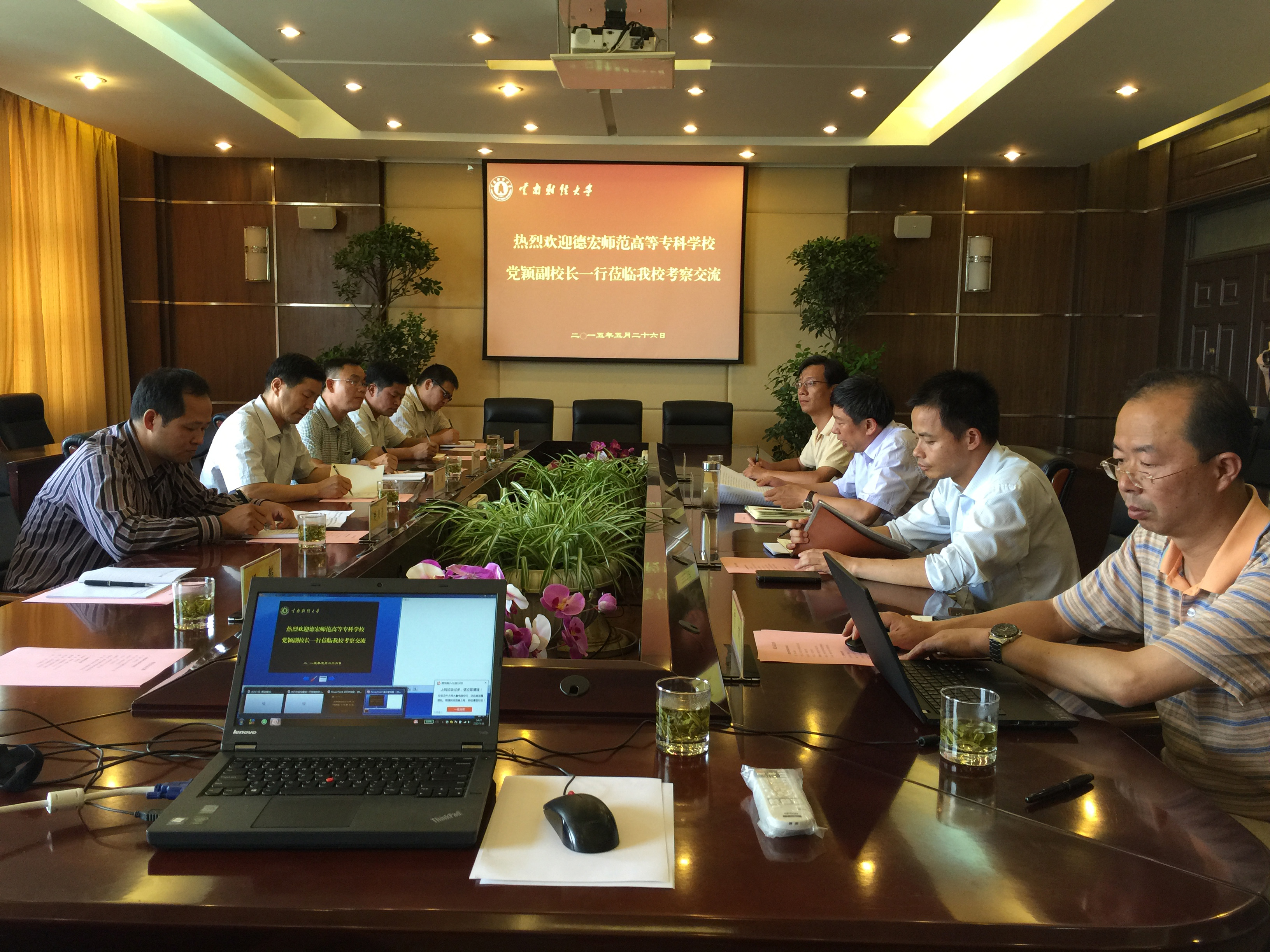 5月26日下午,德宏师范高等专科学校副校长党颖率队到我校考察交流,双方就信息化建设情况进行交流座谈。会议由副校长全洪涛主持。