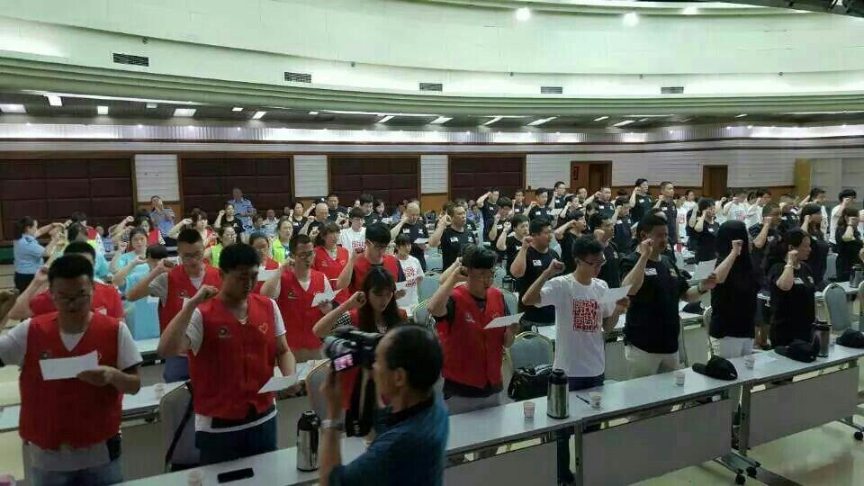 “我承诺,以减少毒品危害为目标,毒品一日不绝,禁毒一日不止!以禁毒宣传为己任,尽己所能,不计报酬,参与禁毒!”挂牌仪式上,包括金融学院志愿者在内的一百多名志愿者跟随云南省禁毒志愿者代表王迪进行了庄严的宣传。