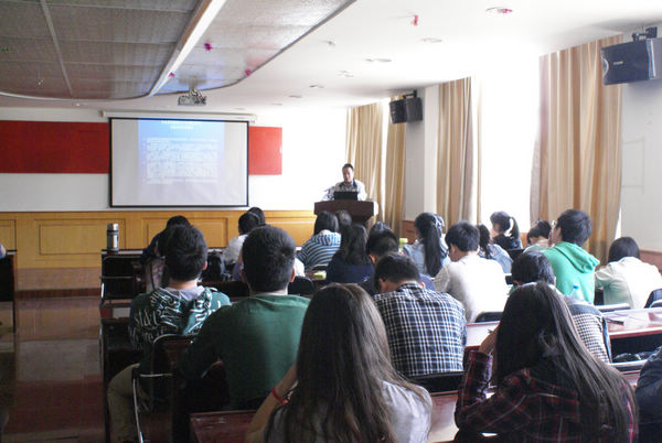 陈明昆从新闻的传统定义出发开始讲解,通过对比多国的新闻风格阐明了我国新闻的侧重点。他表示,新闻的发布要做到“快”这个基本要求,他利用当下热门的新闻媒体案例,阐述了新闻时效性的重要意义。他还就新闻的各项基本功能和四种常见的校园新闻的写作重点展开了细致的理论介绍及案例分析。通过点评几篇特点鲜明的校外媒体新闻以及我校的校园新闻,讲解了倒金字塔式的消息结构,对同学们写作校园新闻提出了开门见山、直奔主题的要求。讲座最后,他就遣词造句的重要性作了生动讲解,就信息学院的新闻写作提出了意见和建议。