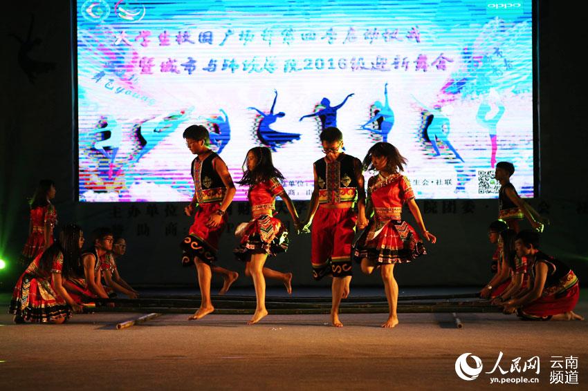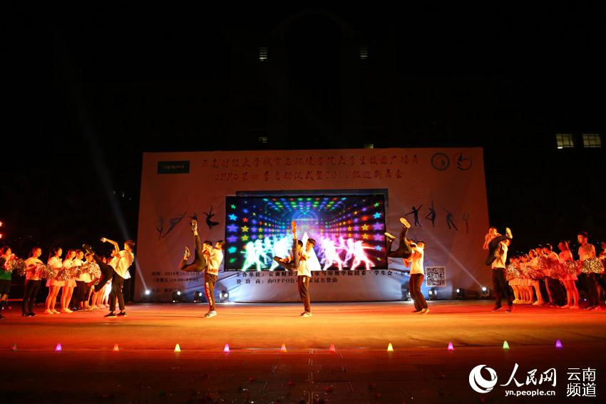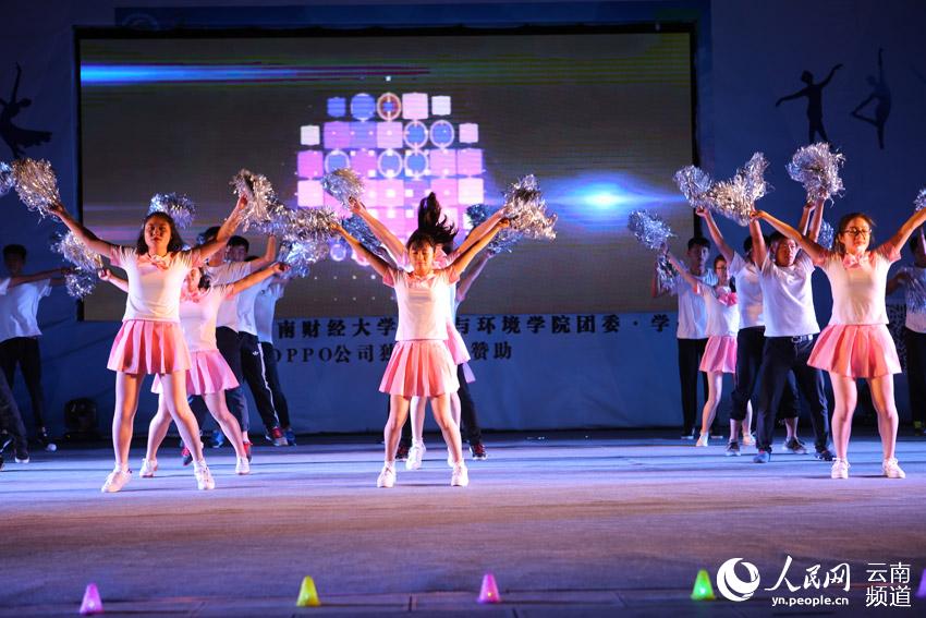 人民网昆明10月22日电 (李发兴)10月21日晚,云南财经大学城市与环境学院举行“我的青春我的团”大学生校园广场舞比赛,近20支大学生舞蹈队比拼。