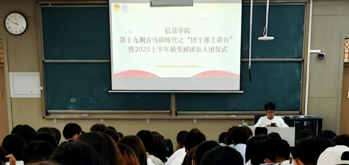 为深入推进青年马克思主义者培养工程,强化团员意识教育,凝聚青年思想共识,10月16日下午13时,信息学院分团委在鹏云二208教室举办信息学院第十九期青马训练营之“团干部上讲台”暨2025上半年新发展团员入团仪式。