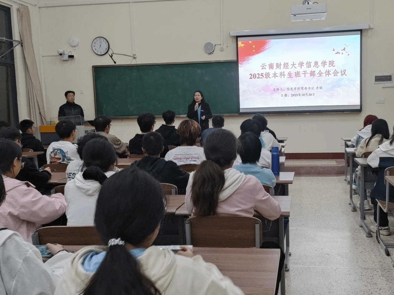 10月30日晚,为强化学生干部责任意识,提升班级管理与服务水平,信息学院组织2025级全体班干部和宿舍长召开专题会议。会议由信息学院党委书记李娟主持。