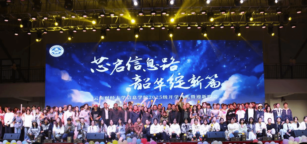 11月9日晚,信息学院“芯启信息路,韶华绽新篇”2025级开学典礼暨迎新晚会在安宁校区体育馆成功举办。