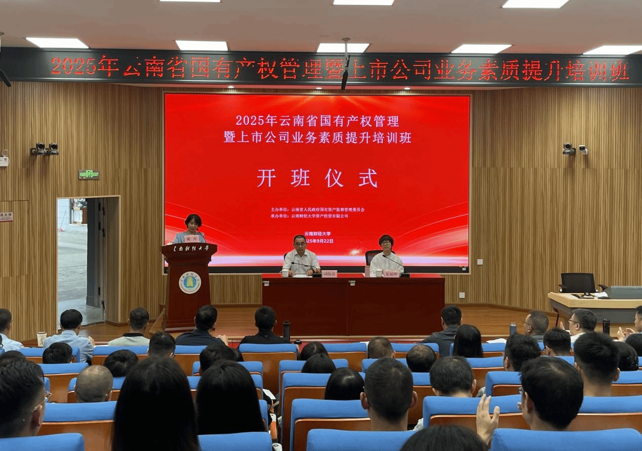 9月22日早上,由公司承办的2025年云南省国有产权管理暨上市公司业务素质提升培训班在学校行远楼D101报告厅开班。云南省国资委党委委员、副主任夏丽坤,云南财经大学党委委员、副校长胡海彦出席了开班仪式。