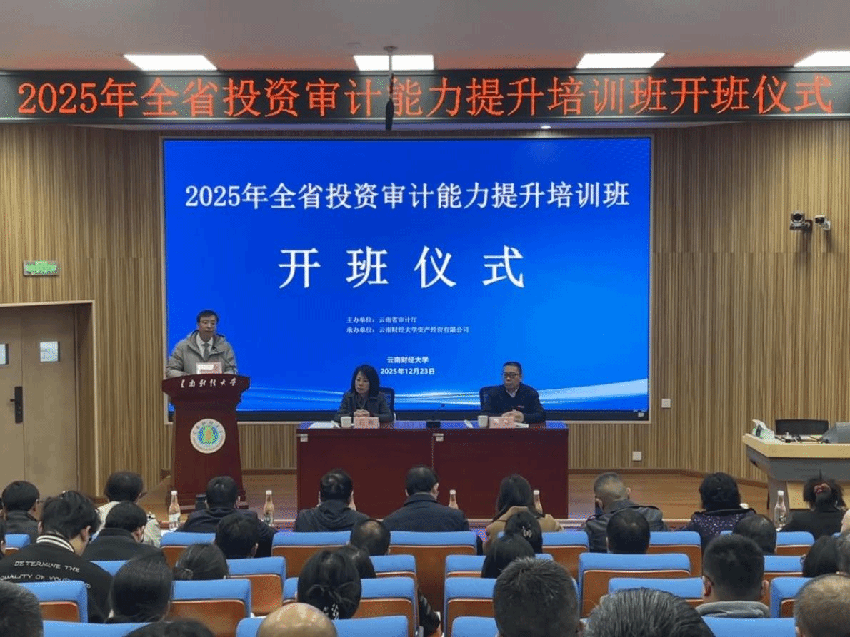 12月23日上午,由公司承办的2025年全省投资审计能力提升培训班在学校行远楼D101报告厅开班。云南省审计厅副厅长王辉,云南财经大学副校长彭强出席开班仪式,会议由公司党支部书记、董事长徐良金主持。