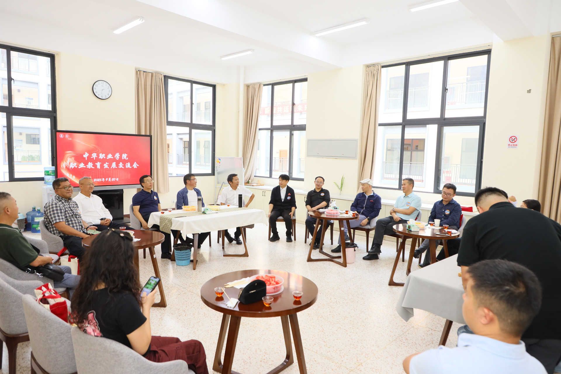 9月20日,中华职业学院在修远楼205教室召开职业教育发展交流会,原中华职业学院党委书记、云南国土资源职业学院党委书记牛定柱,原中华职业学院党委书记、昆明文理学院党委书记吴应利,云南南方教育投资集团总经理徐红卫,云南南方教育投资集团总经理助理、云南铭辉教育发展有限公司副总经理、云南农业职业技术学院云安农文旅产业学院副院长谭珏,原中华职业学院党委副书记高天云,中华职业学院党政领导班子成员以及曾在学院工作过的校友代表、学院相关教师参加。