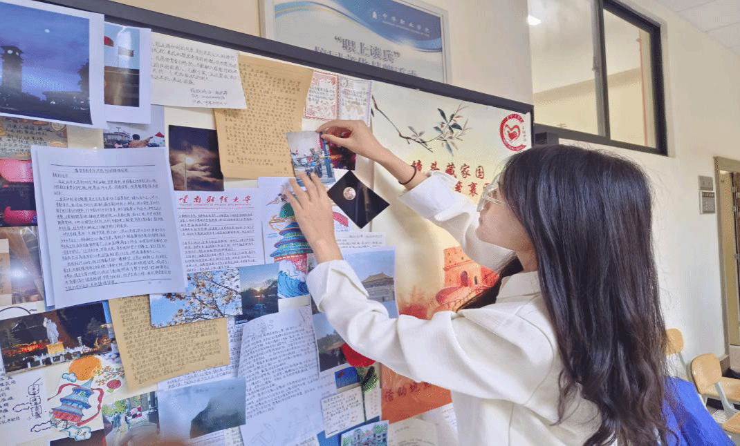 为深入传承家国一体文化,贯彻落实立德树人根本任务,10月15日中华职业学院青年志愿者分会在安宁校区修远楼大厅举办“镜头藏家国·信笺裹团圆”双节公益展活动,200余名同学参与。