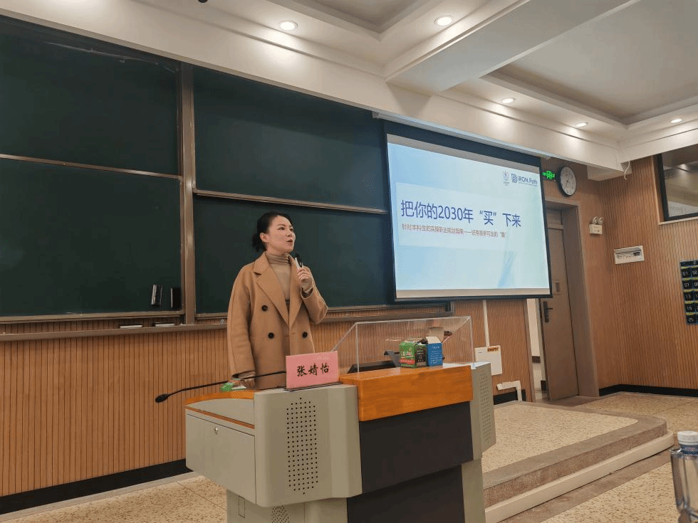 李可以“学姐的来时路——永远热爱自己,人生密度是自己给的”为题,回顾了在母校的求学经历,分享了毕业后扎根教育行业、联合创办iRON.Path品牌的创业故事,向学弟学妹们深情寄语:“愿你们在云财的时光里,既敢仰望星空,也肯脚踏实地;未来无论走多远,都能保持热爱、守住初心——人生的密度,从来都是自己一笔一划写就的”。张婧怡则以“全球视野下的生涯定位”为主线,结合十余年升学与职业规划咨询案例,剖析了大学生如何在新时代精准定位个人方向,重点介绍了未来五大职业趋势,为同学们提供了实用的职业发展规划路径和职业技能提升建议。互动环节,两位校友围绕“跨专业就业”“创业初期资源拓展”“AI时代的能力准备”等话题与同学们深入交流,现场气氛热烈。