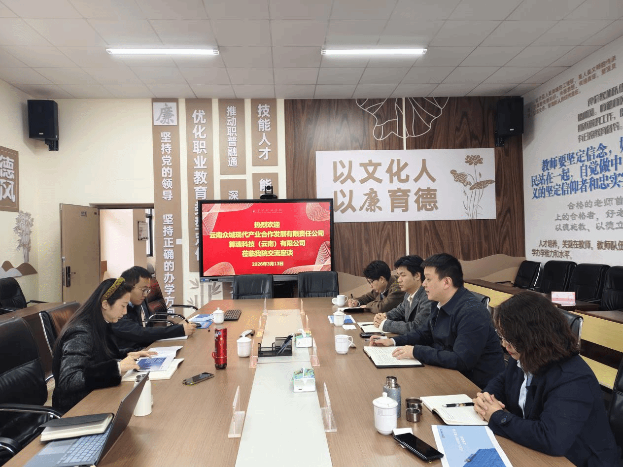 3月13日,中华职业学院与云南众城现代产业合作发展有限公司、算魂科技(云南)有限公司在安宁校区举行校企合作洽谈会。学院党委副书记刘诗奇主持会议。