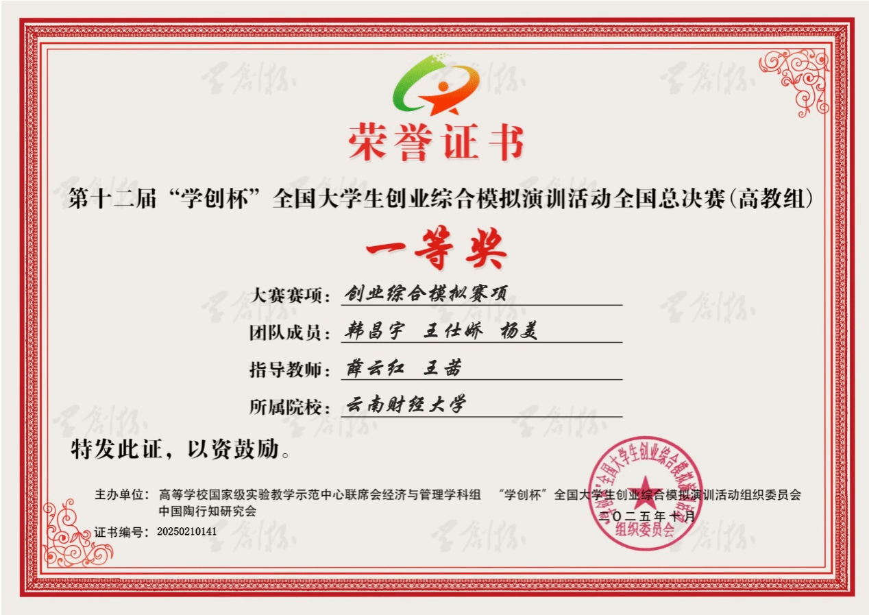 近日,第十二届“学创杯”全国大学生创业综合模拟大赛总决赛(高教组)圆满落幕。中华职业学院代表队在比赛中凭借扎实的专业知识、出色的团队协作与卓越的临场表现脱颖而出,荣获创业综合模拟赛项全国一等奖。学院连续12年参加“学创杯”比赛均取得了优异成绩,这是学院“以赛促学、以赛促教、以赛促创”育人模式的积极成果。