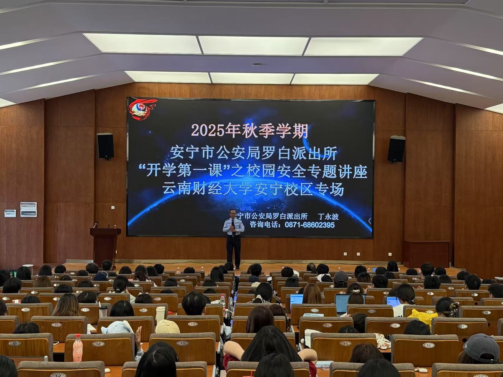 为提升师生安全防范意识,进一步筑牢校园安全防线,9月12日下午,学生处、保卫处联合云南省公安厅交通管理总队高速公路三支队、安宁市罗白派出所到学校安宁校区开展交通安全暨防范电信网络诈骗知识“开学第一课”。云南省公安厅交通管理总队高速公路三支队副支队长徐飞,高速公路三支队一大队教导员姚越、副大队长李万江,罗白派出所所长丁永波,学校保卫处副处长赵强以及安宁校区各学院辅导员、学生代表300余人参加,学生处副处长王帅主持活动。...