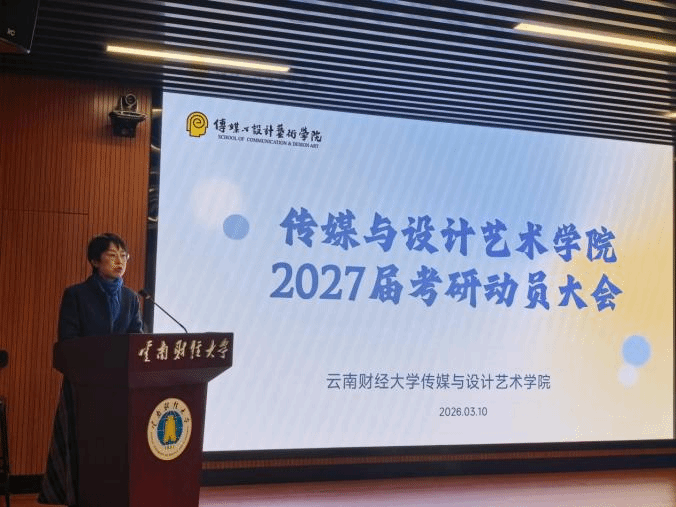 为助力2027届学子明晰研途方向、把握政策脉搏、筑牢备考根基,3月10日,传媒与设计艺术学院在齐远楼106报告厅举行2027届考研动员大会。学院党委书记张波、院长袁洪、党委副书记赵小玎、副院长李楠、教学管理科科长许婧婧及2023级所有班主任与全体意向考研学子参加会议。