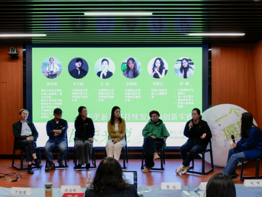 圆桌论坛环节,润物花园行动联合发起人王沄担任主持,邀请周浩明教授、云南润世文化创始人赵啸、昆明心轻游创创始人周慧洁、学院教师韦艺韬、文佳、张慧娟等围绕城市更新、可持续生活等议题展开交流。