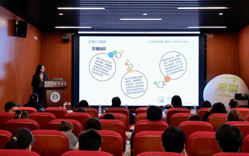 贾远、马莹鼓励在场师生以创意设计践行绿色生活理念,用设计力量赋能社区绿色发展。竞赛指导方专家、同济大学刘悦来、戴代新在视频中为赛事寄语,预祝赛事顺利进行。学院丁绍莲副教授以《从“空间”到“家园”》为题,提出可持续设计需在情感连接中建立自动化习惯,让学生在认同家乡文化的基础上获得专业使命感。“在地自然”的邓克敌老师分享了石城自然学校的“朴门永续实践”,包括垃圾分类、厨余堆肥等闭环系统及可持续生活课程。
