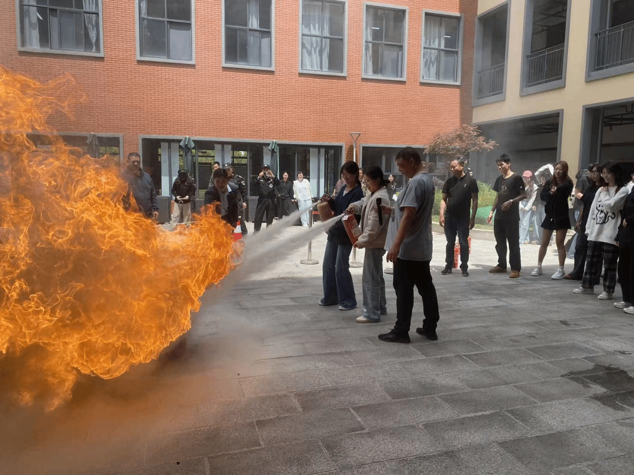 张建荣向参与演练的师生介绍了实验室应急消防处置、突发状况应对措施、安全疏散撤离、消防器材使用等方面的知识。在了解了相关知识后,参演师生在保卫处工作人员的指导下开展实验室突发状况应急疏散演练,以及消防水龙、干粉灭火器等消防器材的实际操作。
