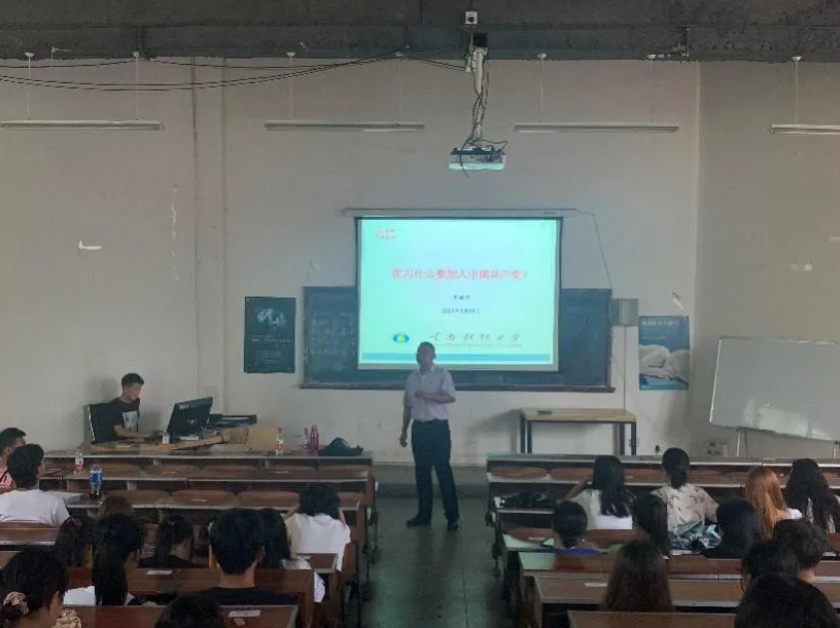 开班仪式结束后,由李丽忠书记以“我为什么加入中国共产党”为题,为全体学员开讲“青马班”第一课。李老师先就课前调研的“普遍大学生对入党的疑问”做了详细的解释说明,以“我为什么要加入中国共产党”为引切入,通过讲解和答疑,加深了有入党志愿的同学和入党积极分子对党思想层面的理解,提升了大家一心向党,为人民服务的感悟。随后,李老师提出了“入党需要什么条件”一问,为学生们介绍了入党的各项指标、条件、章程及入党的程序和发展流程,让同学们们了解到入党并非轻易小事,大家必须严肃认真对待,因为这不仅关系到个人荣誉,更是社会和国家的荣誉。