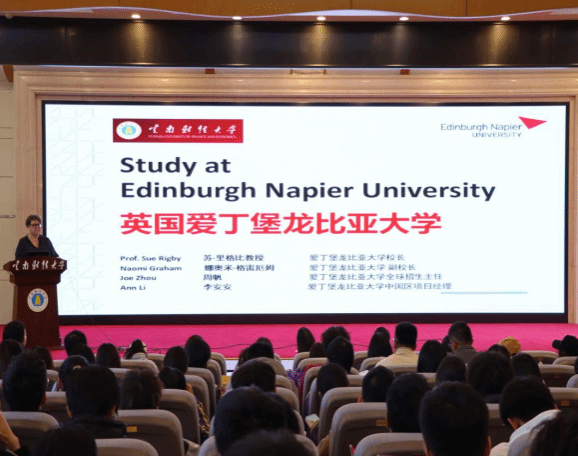 Li An'an, a program head from Edinburgh Napier University, delivered a presentation on studying abroad to students from the 2023 and 2024 cohorts, providing detailed information on application paths and policy support for pursuing further studies at Edinburgh Napier University.